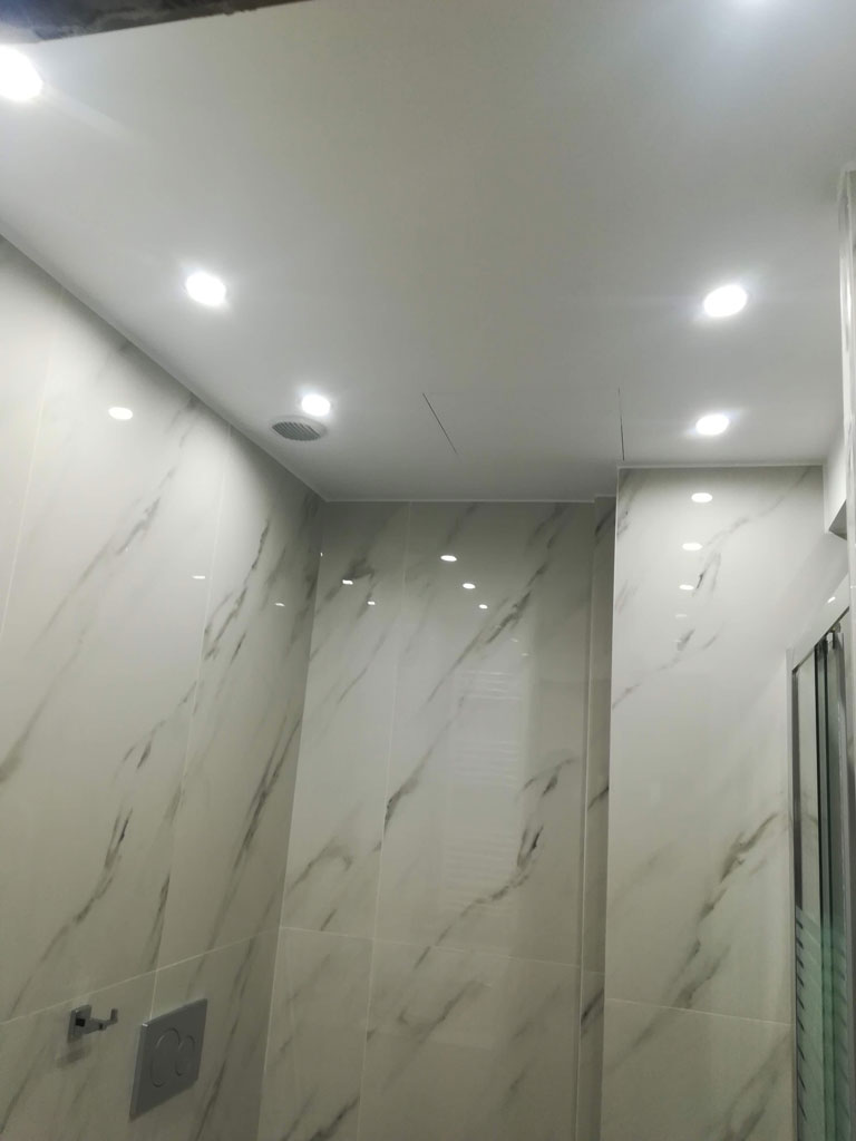 - Ψευδοροφή με ανθηγρή γυψοσανίδα αφού προηγουμένως έχει τοποθετηθεί εξαερισμός και παροχές φωτισμού