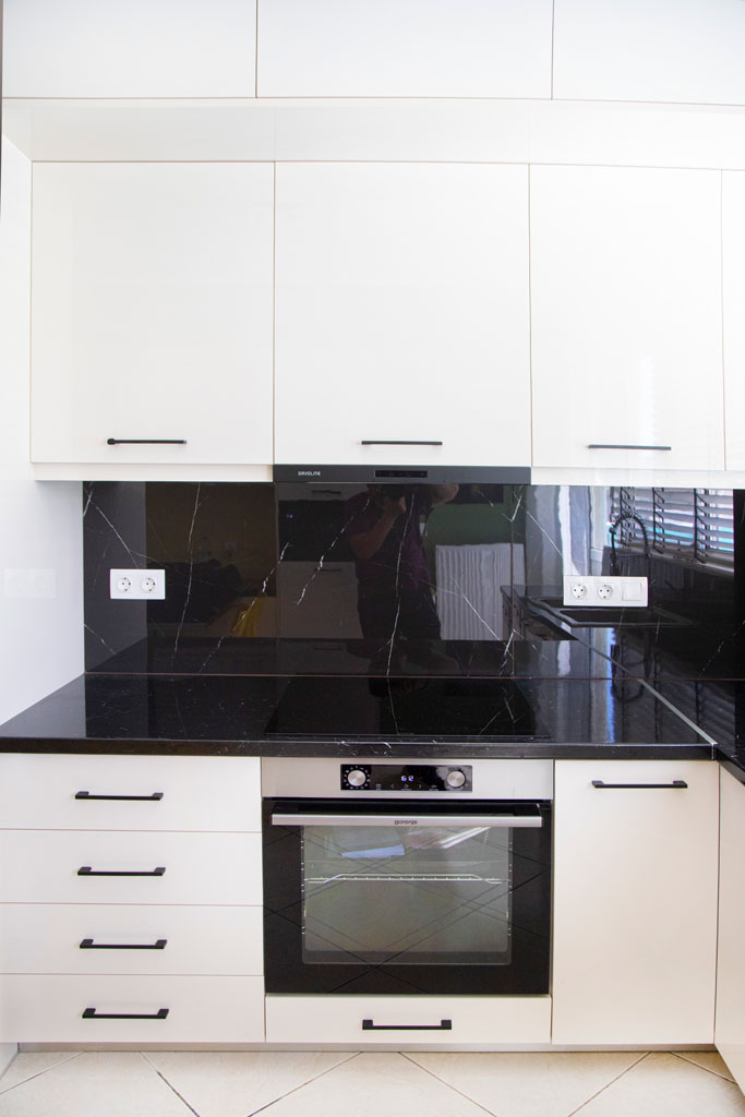 🔸 Νέα γυαλιστερά λευκά ντουλάπια μέχρι την οροφή
