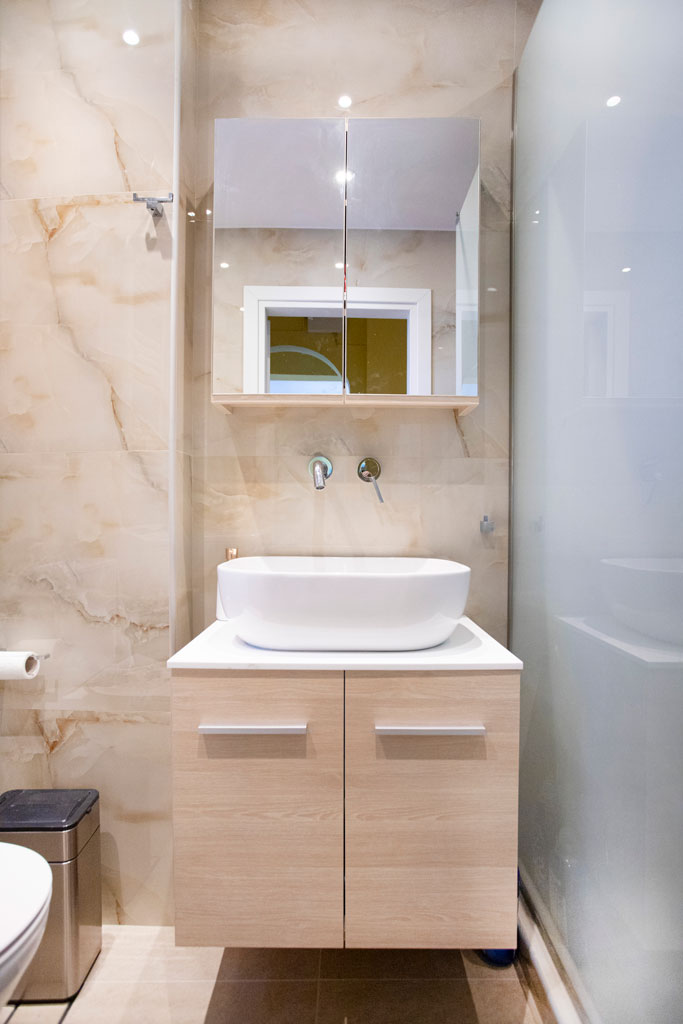 ✔️ Εντοιχισμένες μπαταρίες, επικαθήμενος νιπτήρας και πρακτικό ντουλάπι-καθρέφτης