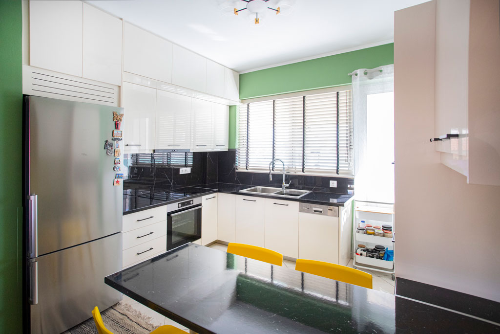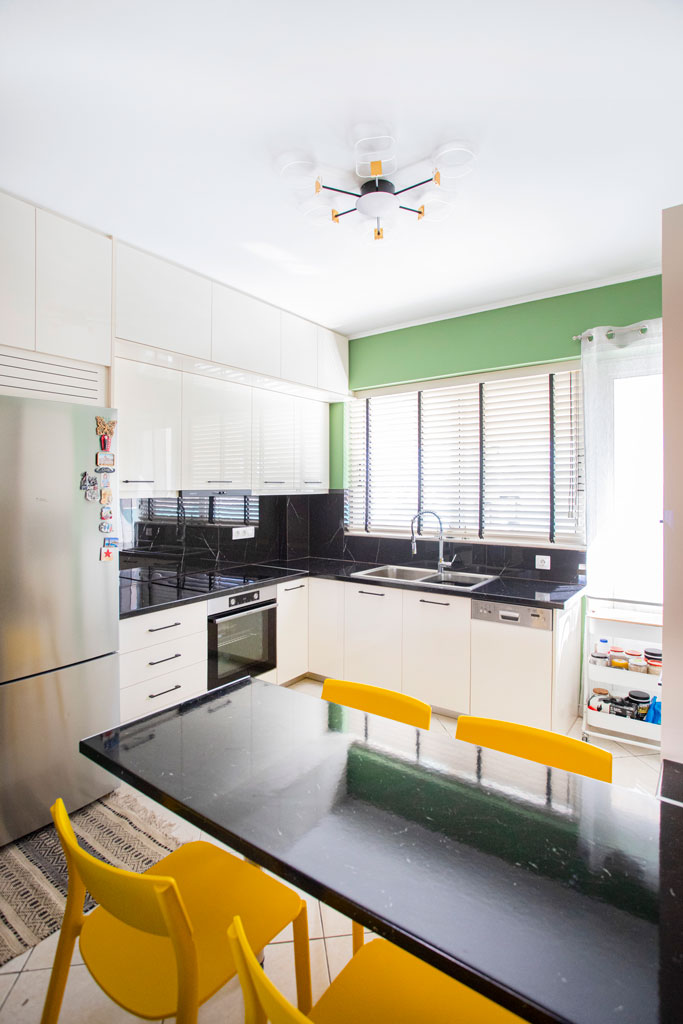 Η κουζίνα μεταμορφώθηκε σε έναν χώρο φιλικό και ευχάριστο για κάθε στιγμή της ημέρας.