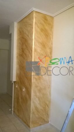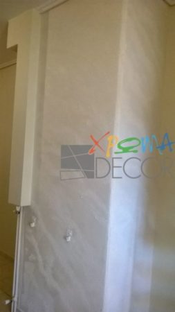 Έτσι λοιπόν, στο παρακάτω διαμέρισμα στην περιοχή του Ταύρου, οι ειδικοί προχώρησαν στην εφαρμογή τεχνοτροπίας istinto. Η τεχνοτροπία Istinto δεν είναι άλλη παρά η χρήση ειδικού στόκου για τη δημιουργία ανάγλυφης όψης, καθώς και τη δημιουργία φινιρίσματος που θυμίζει φθαρμένη ή λεία πέτρα, πέτρα με σχισμές, αλλά και οποιαδήποτε άλλη μη λεία επιφάνεια. Βασικά συστατικά του στόκου αυτού αποτελούν ο ασβέστης, μαρμαρόσκονη και άλλα ορυκτά υλικά.  Στη συνέχεια, το τοποθετήσαμε έπειτα από προσεκτική μελέτη σε συγκεκριμένα σημεία του σπιτιού. Τα χρώματα συμφωνήθηκαν έπειτα με βάση τις υπόλοιπες αποχρώσεις των χώρων αυτών.