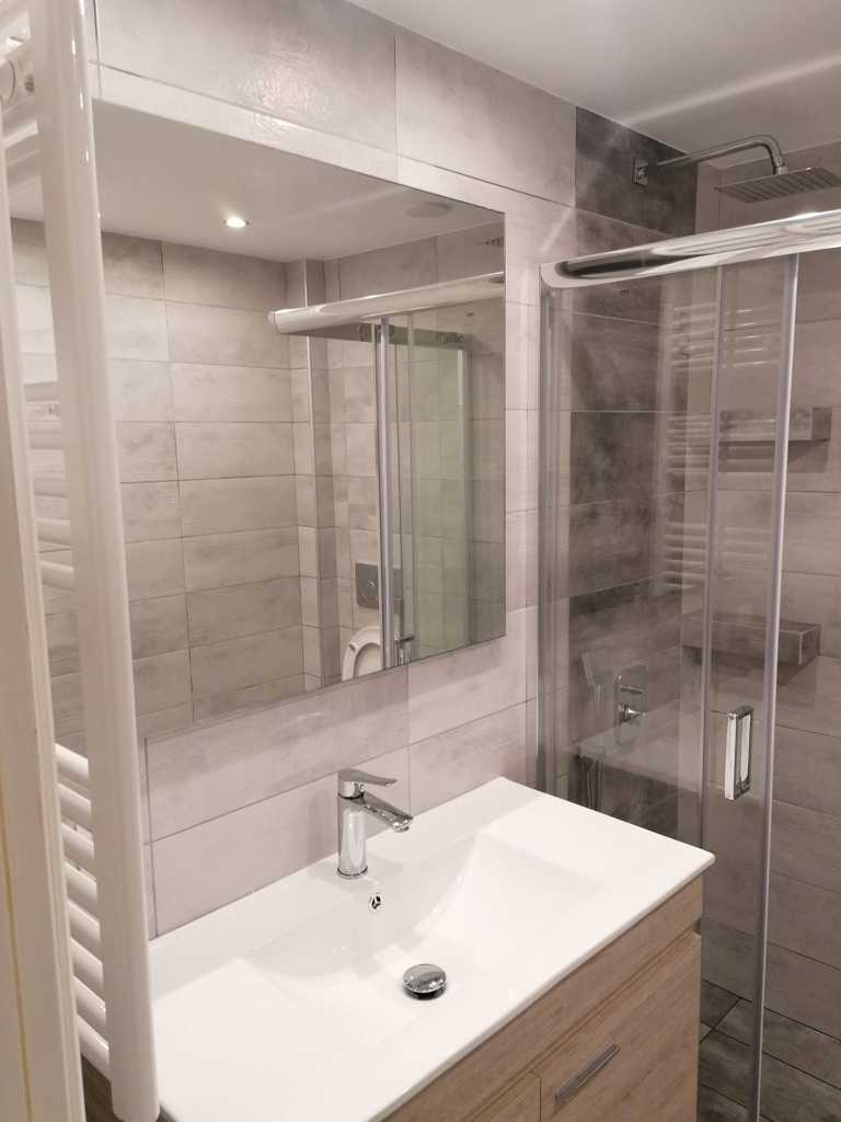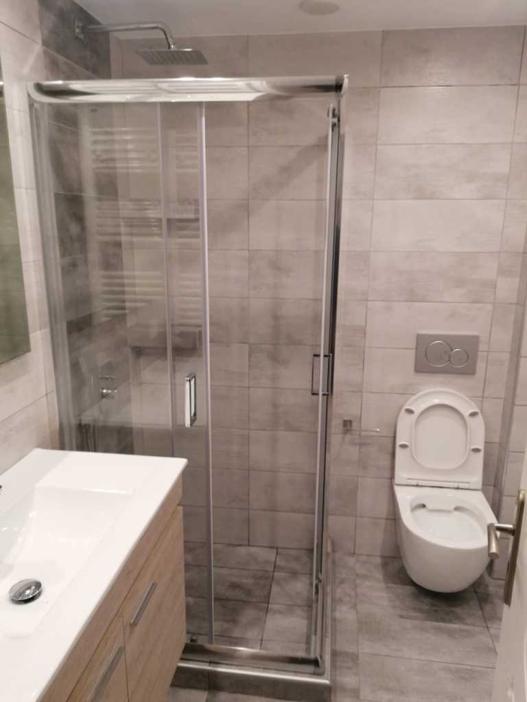 Μετά την ολοκλήρωση της ανακαίνισης, το παλιό μπάνιο έδωσε τη θέση του σε ένα σύγχρονο μπάνιο υψηλής αισθητικής, που ανταποκρίνεται στις ανάγκες του πελάτη και των ενοίκων. Αποτελεί πλέον συνώνυμο της άνεσης.