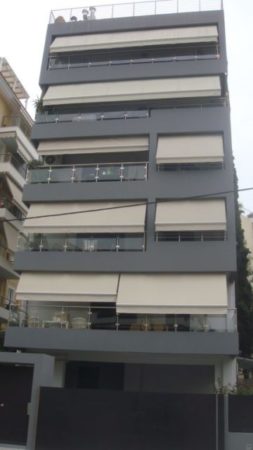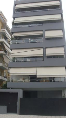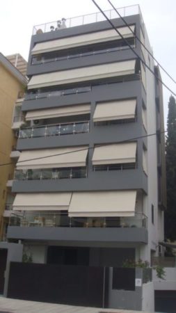 Έτσι λοιπόν, με γνώμονα όλα τα παραπάνω κινηθήκαμε και στην πολυκατοικία στο Παλαιό Φάληρο. Τα κεντρικά χρώματα που επιλέξαμε ήταν το σκούρο γκρι για τις επιφάνειες των μπαλκονιών, σε συνδυασμό με το ανοιχτό γκρι για τις υπόλοιπες επιφάνειες. Οι επιλογές αυτές μόνο τυχαίες δεν είναι, καθώς ταιριάζουν αρμονικά με τον σύγχρονο χαρακτήρα της πολυκατοικίας, τις τέντες, αλλά και την είσοδο της πολυκατοικίας.
